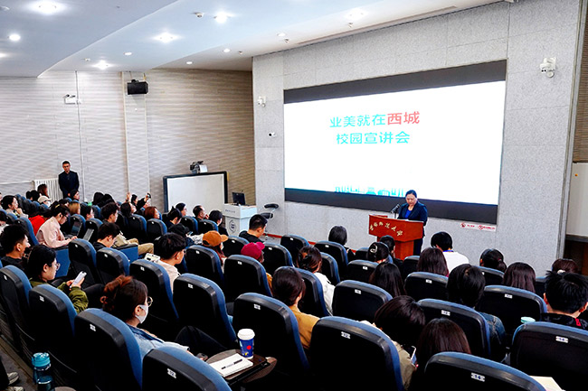人民网北京10月20日电 (鲍聪颖 于志强)为满足毕业生多层次全方位精准化的公共就业服务需求,提升就业创业能力,10月19日下午,西城区人力社保局走进首都师范大学,开展2023年“人社局长进校园”活动。本次活动设立“校园双选会”“校园宣讲会”两个分会场,16家企业进行现场招聘,涉及7类行业59个工种近400个岗位,千余名毕业生到场参加招聘活动。