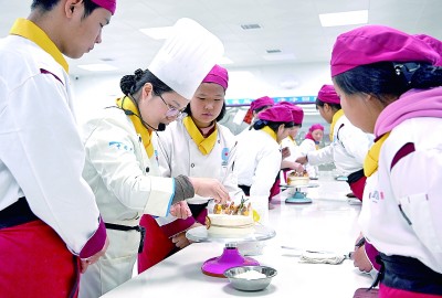 2022年11月15日,陕西蓝田厨师学校的学生在教师指导下学习蛋糕制作。新华社发