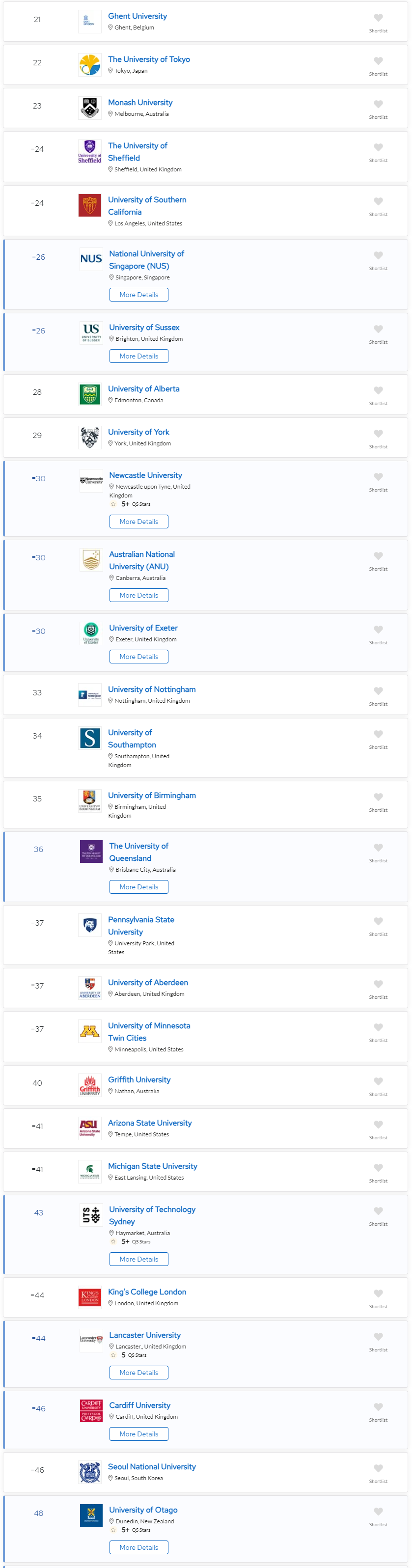 新加坡国立大学:排名第 26 位,被评为环境和气候相关研究方面的世界最佳,同时在教育影响力指标中亚洲排名第一,表明其在社会影响方面的学术卓越。