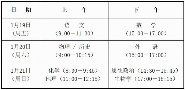 近期我区天气起伏多变,请考生关注天气变化,做好防雨保暖。1月19日考试适逢周五工作日,考生需关注赴考交通信息,事先规划出行时间和路线,提前到达考点,为入场检查预留充足时间。按考务规则,外语科目考试开考前15分钟(1月20日14:45)后禁止考生入场;其他科目考试开考15分钟后,不得进入考点参加当次考试。请各位考生注意,切勿迟到。